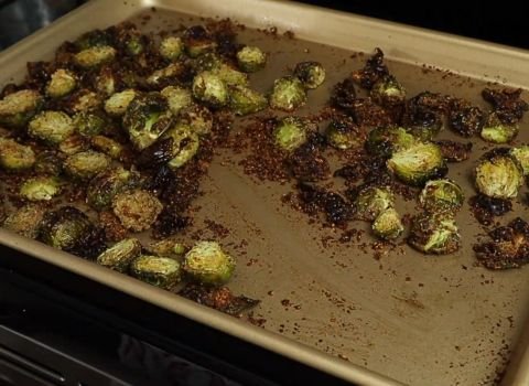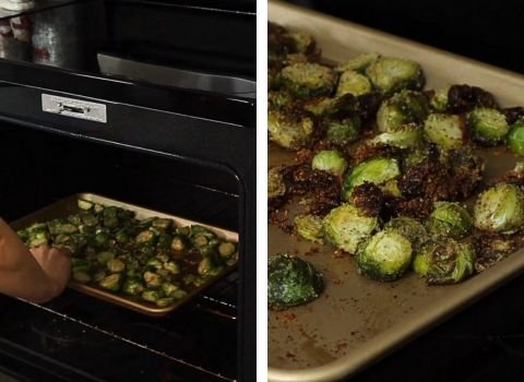 Take the tray out, let the sprouts sit for a few minutes, then serve them warm. The Parmesan will be crisp and the sprouts will have that perfect crunch.