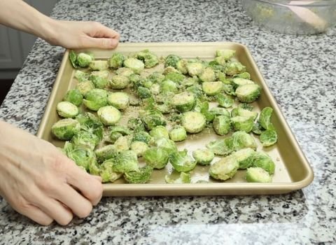 - Line a baking sheet with parchment paper or spray it lightly with cooking spray. Spread the sprouts in a single layer so they roast instead of steam.